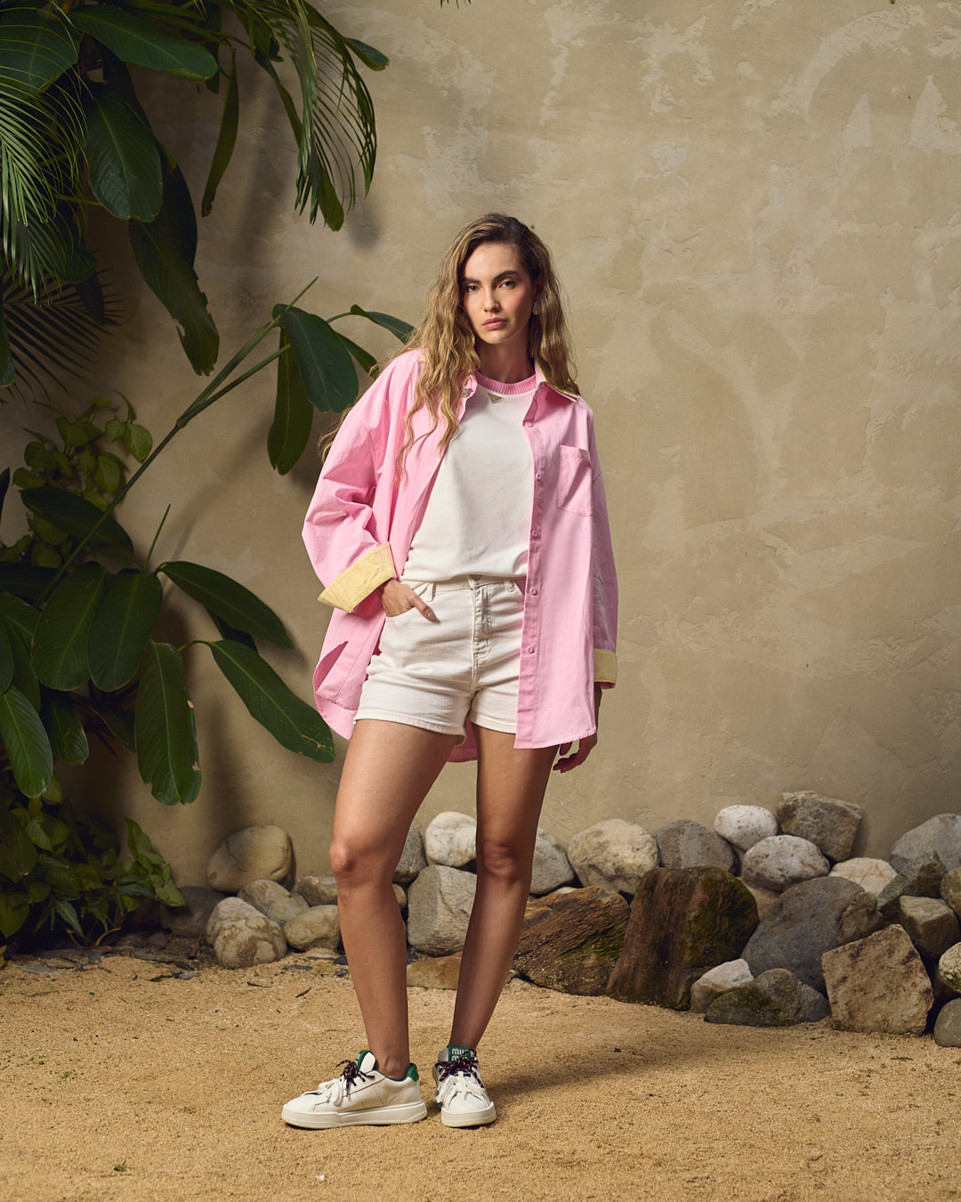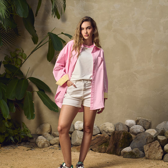 Camisa combinada doble cuello rosada