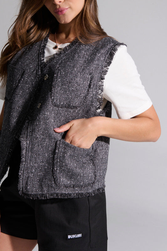 -chaleco con textura y bolsillos